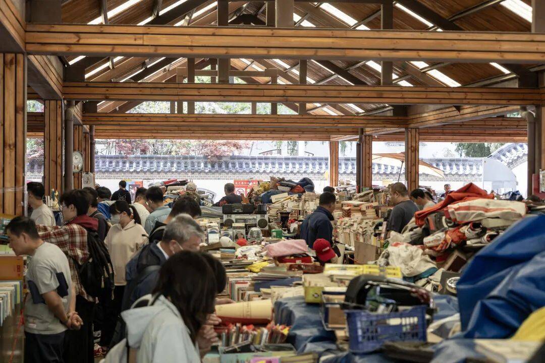 公园里的旧书集市,吸引众多读者前来淘书阅读。@一诺不是千金