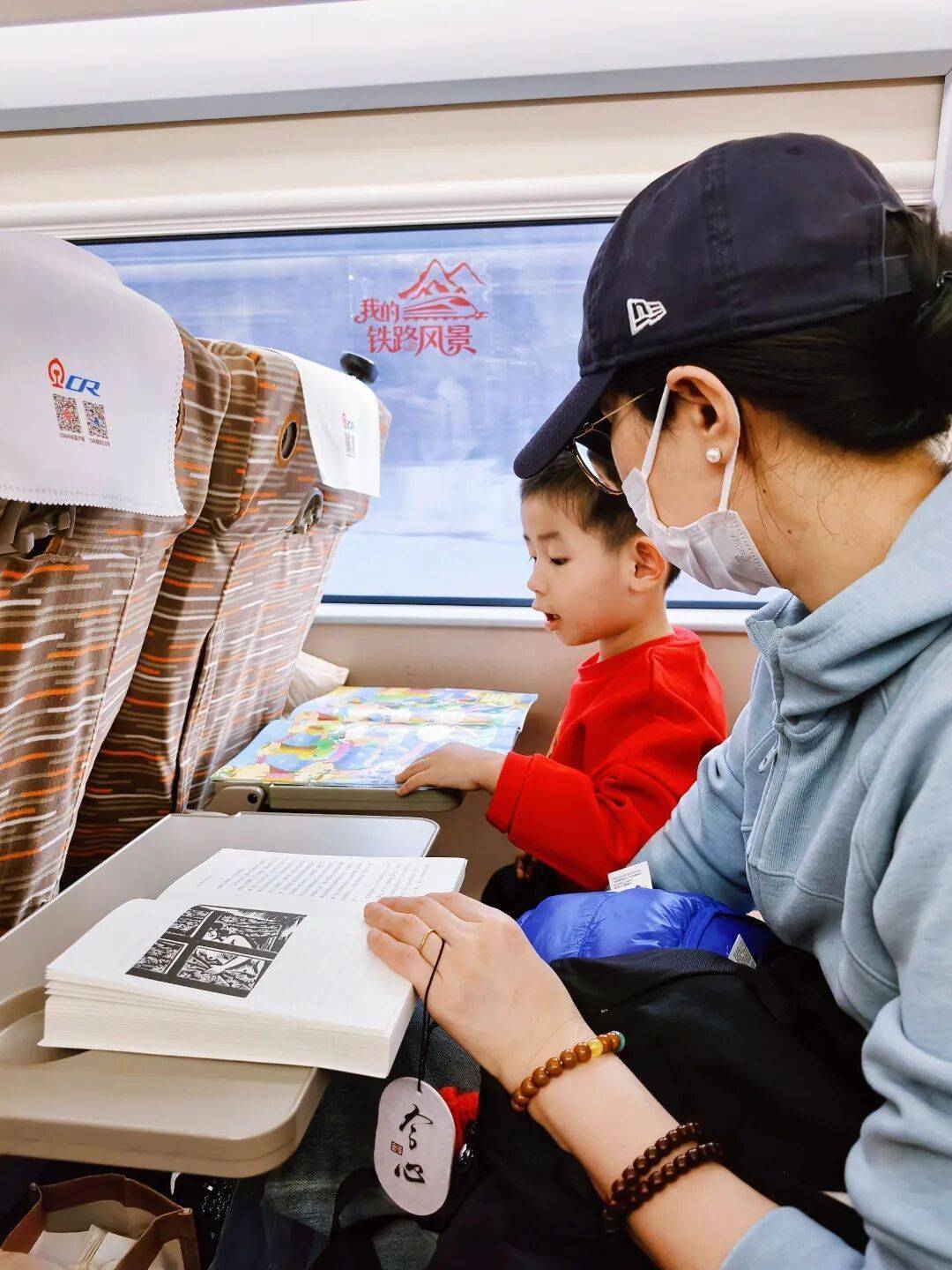 妻儿在旅途中享受美好的阅读时光。@郑开秀