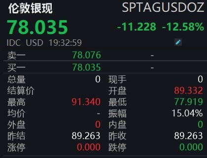 【大河财立方消息】3月3日晚间,现货黄金日内跌幅超4%,报5079.610美元/盎司。现货白银日内跌幅超12%,报78.520美元/盎司。