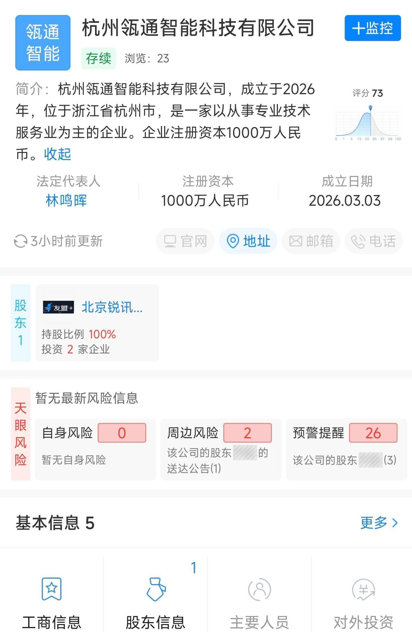 【大河财立方消息】天眼查工商信息显示,近日,杭州瓴通智能科技有限公司成立,注册资本1000万人民币,经营范围包括软件开发、计算机软硬件及外围设备制造、数据处理和存储支持服务、大数据服务、互联网数据服务、人工智能应用软件开发等。股东信息显示,该公司由阿里巴巴旗下北京锐讯灵通科技有限公司全资持股。