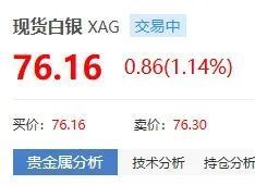 贵金属方面,黄金白银昨夜一度遭遇重挫,现货黄金创一个月新低。Wind数据显示,现货黄金18日收跌3.86%,报4813.533美元/盎司;COMEX黄金期货跌3.68%,报4823.90美元/盎司。现货白银收跌5.04%,报75.363美元/盎司;COMEX白银期货跌5.63%,报75.42美元/盎司。截至19日发稿,现货黄金、现货白银均双双翻红。