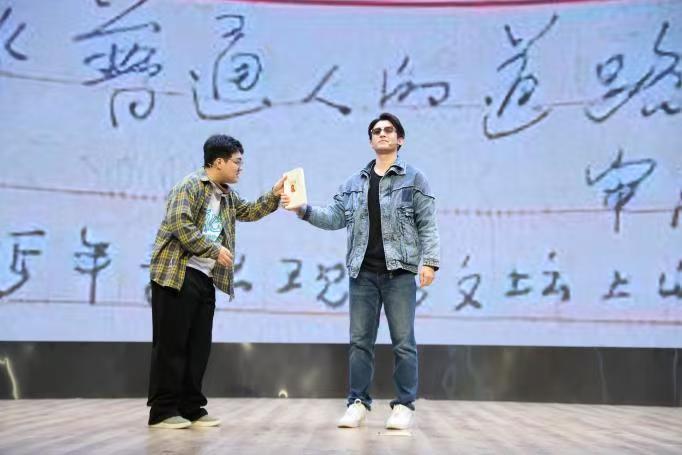 活动现场,上演了一出情景短剧《代码与书香:数字时代的阅读力量》。这是互联网青年从业者通过AI协助打造的,以互联网从业者日常工作生活为创作底色,将代码世界的忙碌与书香浸润的温润巧妙交融。剧中人在阅读中跨越时空,对话苏轼、老舍、路遥,从作品中感悟人生、汲取奋进力量。