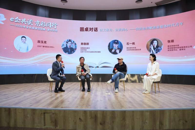 活动中,北京十月文艺出版社原总编辑韩敬群、北京作家协会副主席石一枫、青创智慧科技董事长张萌,3位深耕文学不同领域的嘉宾,围绕“以文聚力,以读润心——阅读如何赋能新媒体时代青年”主题展开交流分享。
