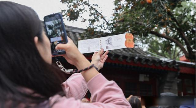游客在北京老舍纪念馆手持门票拍照打卡。(资料图,图片由CNSPHOTO提供)