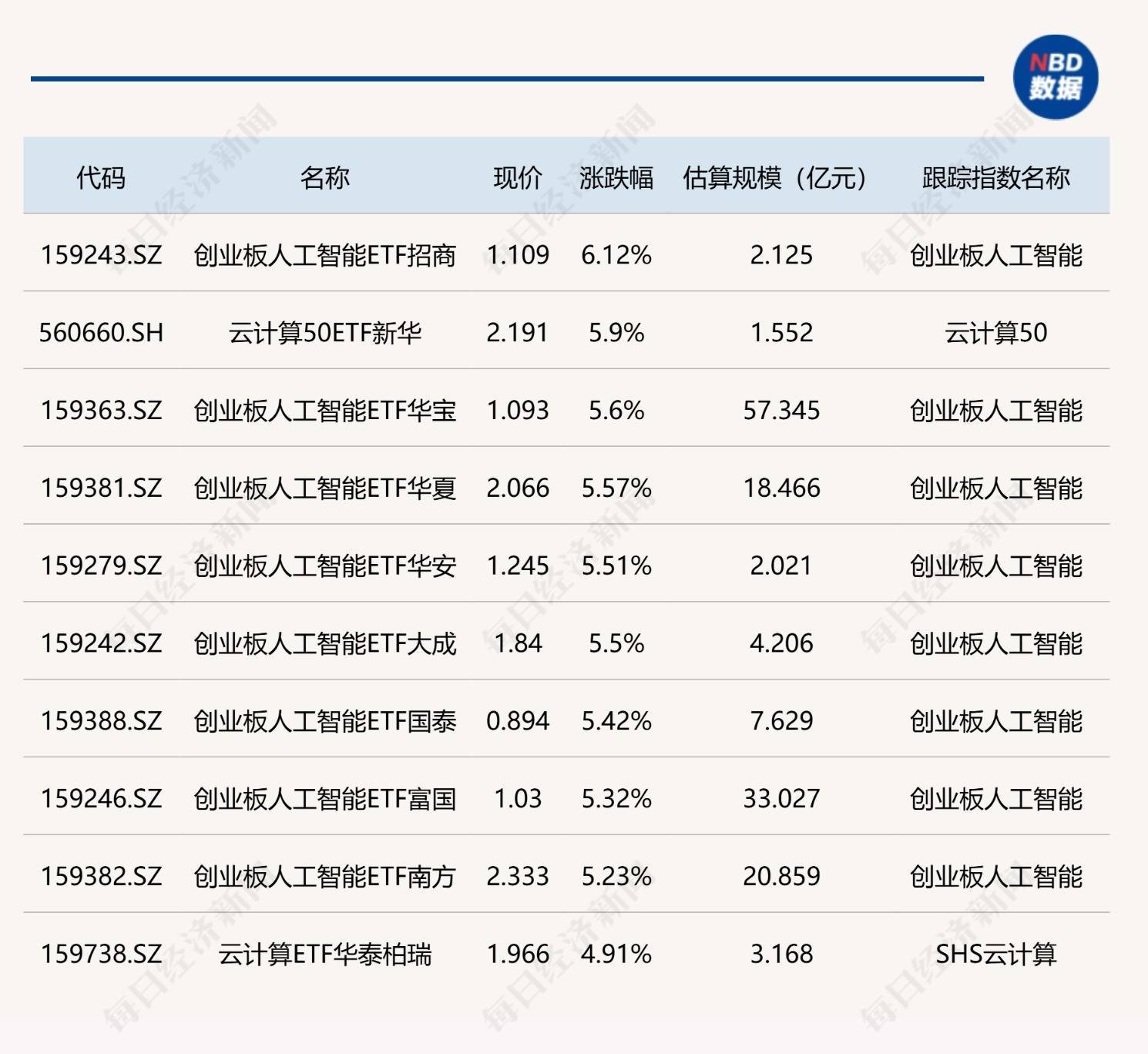 ETF涨跌幅方面,创业板人工智能相关ETF涨超5%。