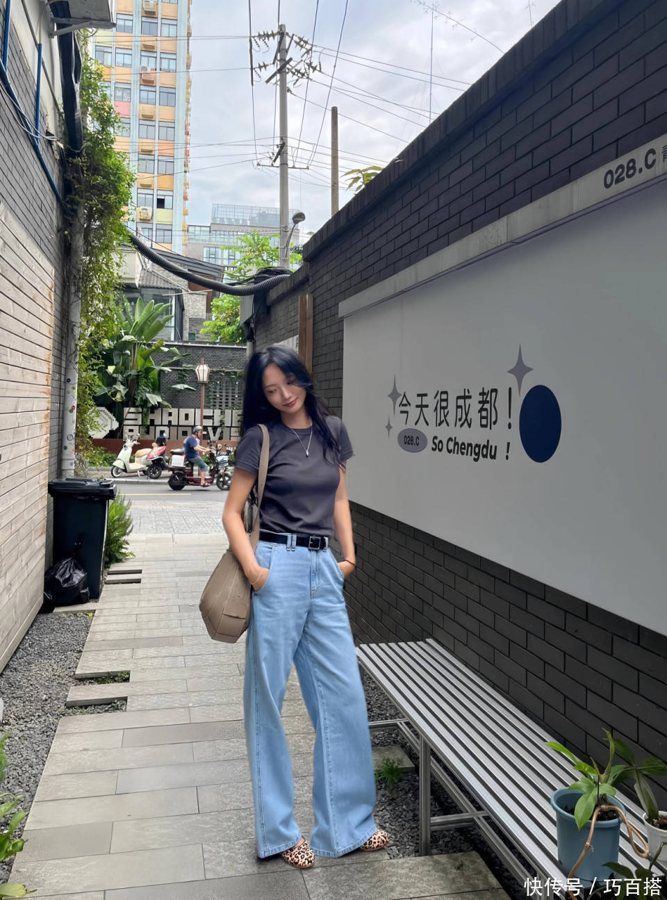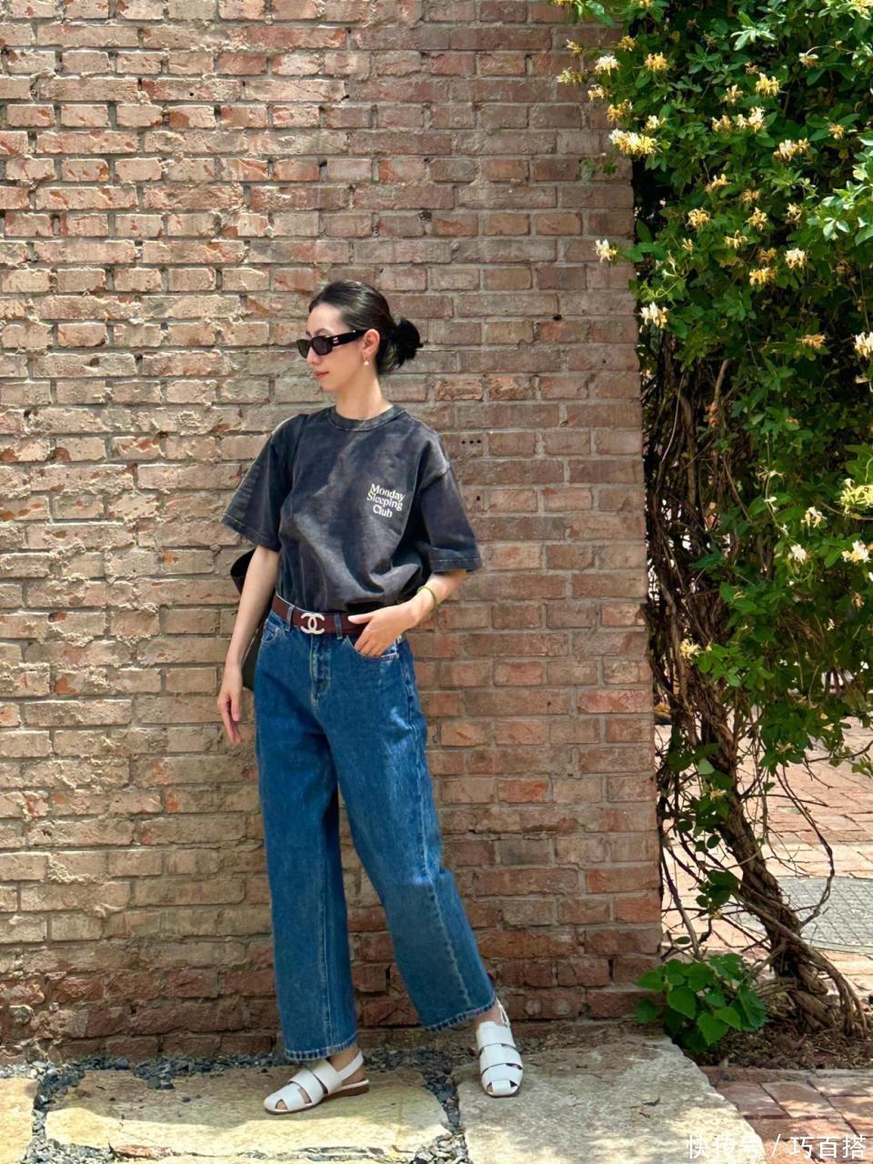 不瞒大家说,我往常挑选T恤时,只认白T恤,但今年不同的是,在不是十分炎热的初夏,我想试试深色T恤,毕竟它在遮肉显瘦、精致利落、干练洒脱氛围的呈现上,是远超纯白T恤的。