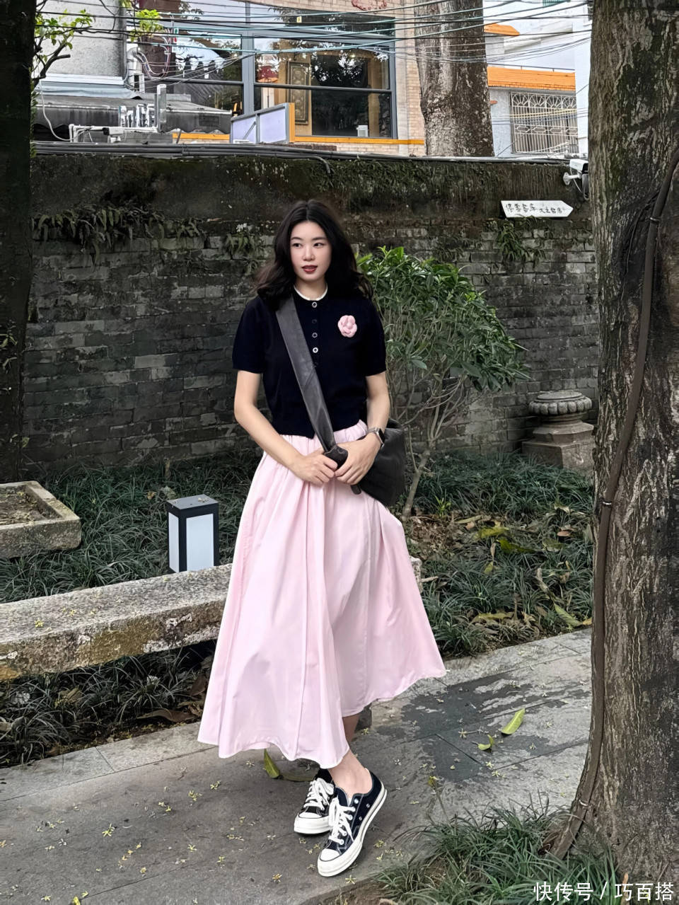 在阳光不是特别毒辣的初夏,穿纯黑色T恤出门最大的安全感来源于它遮肉显瘦的能力,穿它出门“薄薄一片”,视觉上玲珑精致,非常耐看。