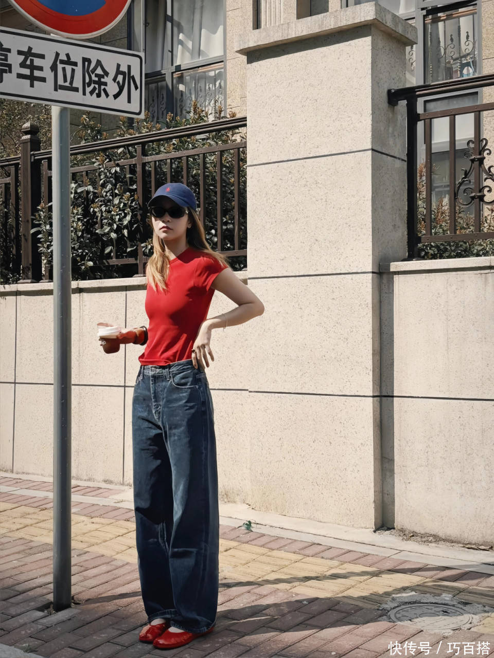 适合安哥拉红T恤的姐妹,在挑选款式时一定遵循极简原则,颜色有存在感款式一定简单,否则单品上身会出现1+1=0的情况,用力过猛会引起视觉疲劳,以修身正肩T恤或紧身露脐款式为主最安全。