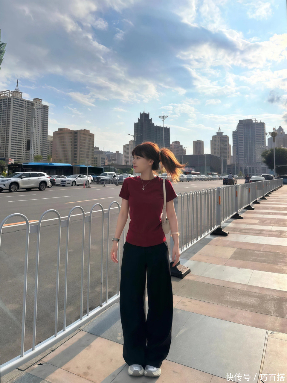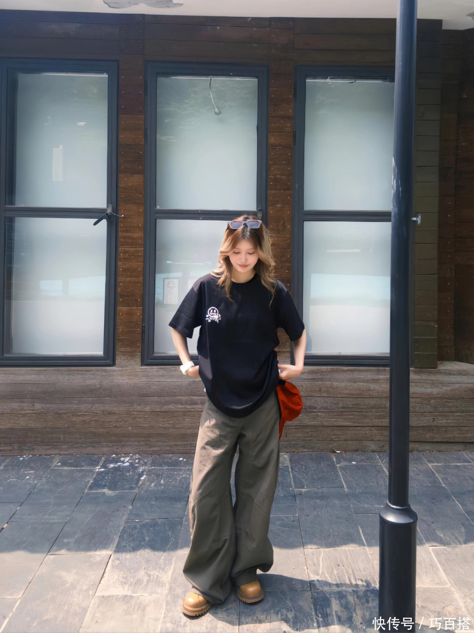 喜欢轻熟干练、精致利落、清冷高智氛围的姐妹,推荐黑色正肩T恤,喜欢中性飒爽、美式街头风格的姐妹,推荐黑色男友风T恤,搭配速干裤、工装裤、运动裤、休闲西裤甚至是基础牛仔裤都耐看。