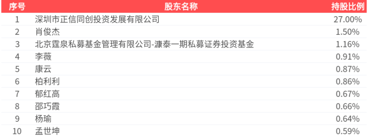 公司股东户数为1.30万户,前十大股东持股数量为2597.23万股,占总股本比例为34.85%,前十大股东持股情况如下: